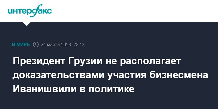 Президент Грузии не располагает доказательствами участия бизнесмена Иванишвили в политике