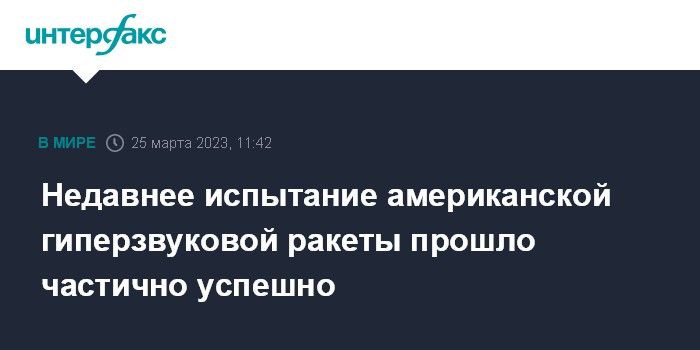 Недавнее испытание американской гиперзвуковой ракеты прошло частично успешно