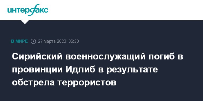 Сирийский военнослужащий погиб в провинции Идлиб в результате обстрела террористов