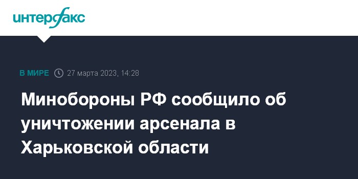 Минобороны РФ сообщило об уничтожении арсенала в Харьковской области