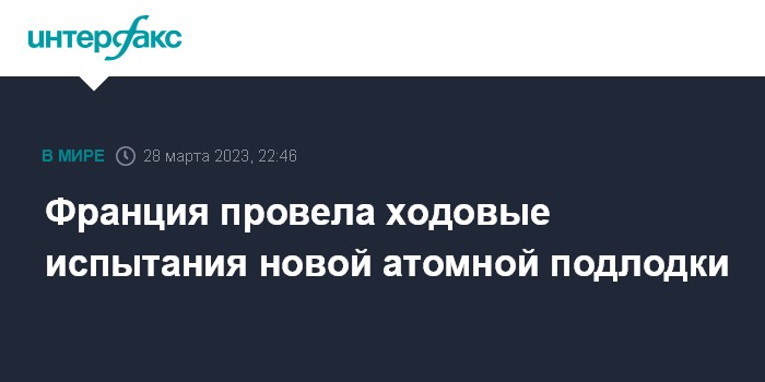 Москва. 28 марта. INTERFAX.RU - Новая французская многоцелевая атомная подводная лодка "Дюгэ-Труэн" успешно прошла первые ходовые испытания, сообщил во вторник министр вооруженных сил Франции Себастьен Лекорню.