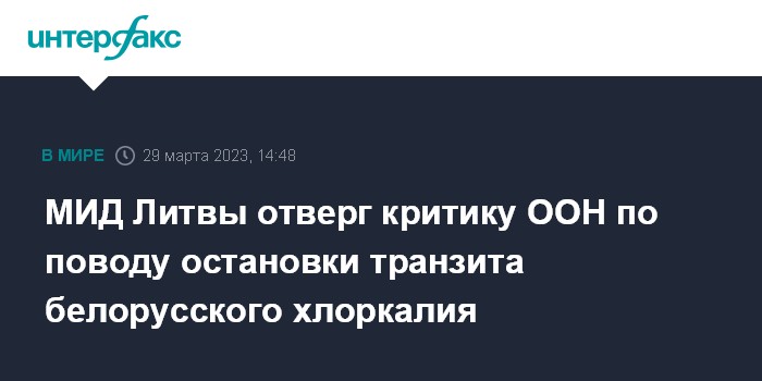 Москва. 29 марта. INTERFAX.RU - В МИД Литвы выразили удивление по поводу заявлений ООН в адрес Вильнюса из-за прерванного транзита белорусских удобрений.