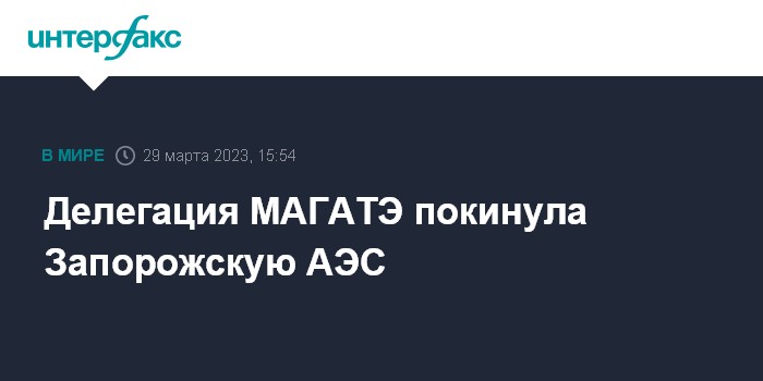 Москва. 29 марта. INTERFAX.RU - Делегация Международного агентства по атомной энергии (МАГАТЭ), которую возглавляет гендиректор организации Рафаэль Гросси, закончила визит на Запорожскую АЭС (ЗАЭС) в Энергодаре и покинула территорию станции, передал в среду корреспондент "Интерфакса".