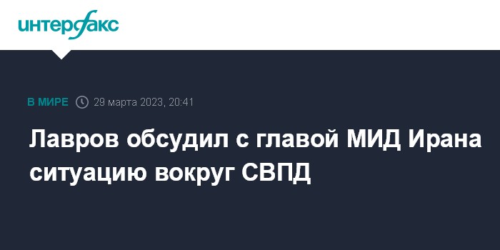 Москва. 29 марта. INTERFAX.RU - В ходе переговоров в Москве министров иностранных дел РФ и Ирана Сергея Лаврова и Хоссейна Амира Абдоллахиана обсуждалось состояние дел вокруг Совместного всеобъемлющего плана действий (СВПД) по иранской ядерной программе, сообщил в среду вечером российский МИД.