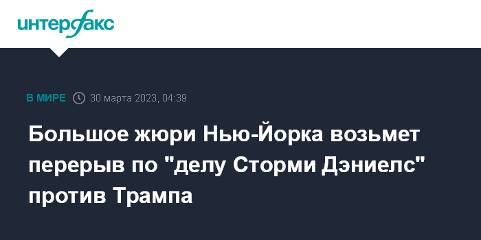 Большое жюри Нью-Йорка возьмет перерыв по "делу Сторми Дэниелс" против Трампа