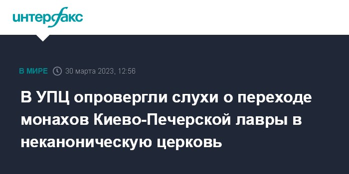 Москва. 30 марта. INTERFAX.RU - В Украинской православной церкви дезавуировали информацию о переходе насельников Киево-Печерской лавры в неканоническую Православную церковь Украины.