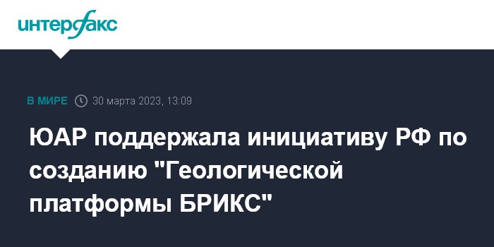 ЮАР поддержала инициативу РФ по созданию "Геологической платформы БРИКС"