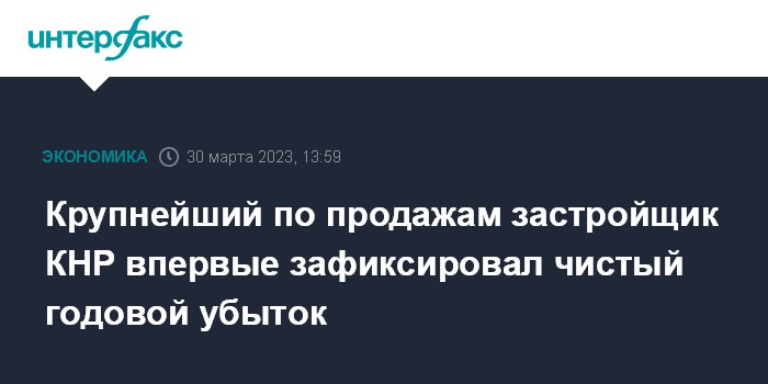 Крупнейший по продажам застройщик КНР впервые зафиксировал чистый годовой убыток