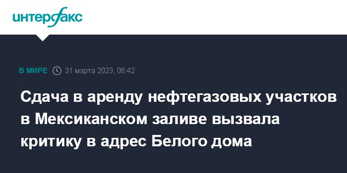 Москва. 31 марта. INTERFAX.RU - Аукцион на аренду нефтегазовых участков в Мексиканском заливе, проведенный на этой неделе, вызвал обеспокоенность и вопросы, касающиеся обещаний президента США Джо Байдена о том, что его администрация будет полагаться на источники чистой энергии, сообщило Национальное общественное радио (NPR).