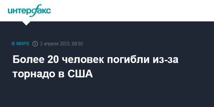 Москва. 2 апреля. INTERFAX.RU - Число жертв торнадо, прошедших через Юг и Средний Запад США, превысило 20 человек.