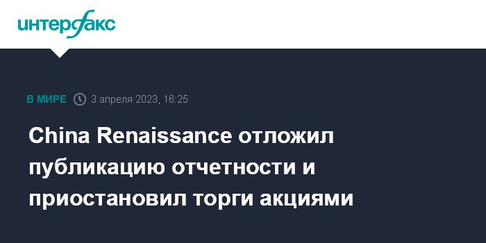 China Renaissance отложил публикацию отчетности и приостановил торги акциями