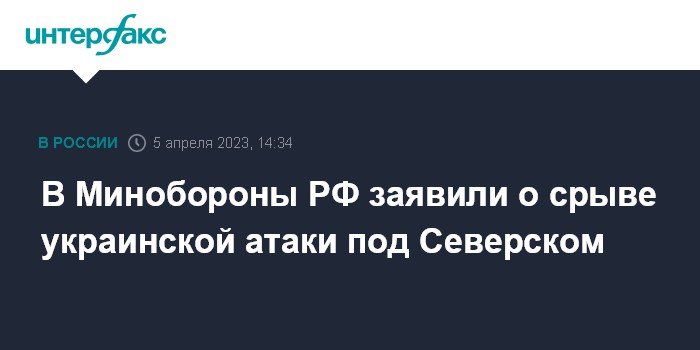 Москва. 5 апреля. INTERFAX.RU - Российские военные ударом артиллерии и тяжелых огнеметных систем сорвали контратаку армии Украины в районе Северска в Донецкой народной республике (ДНР), заявили в Минобороны РФ.