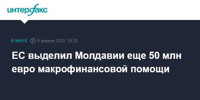 5 апреля Молдавия получила от Евросоюза грант в размере 10 млн евро, а в мае в страну поступит еще 40 млн евро в виде кредита. "Эта поддержка поможет Молдавии удовлетворить неотложные потребности в финансировании и поддержит общую макроэкономическую стабильность, а также позволит провести широкомасштабные и амбициозные реформы", - говорится в сообщении.