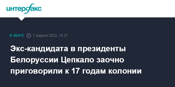 Экс-кандидата в президенты Белоруссии Цепкало заочно приговорили к 17 годам колонии