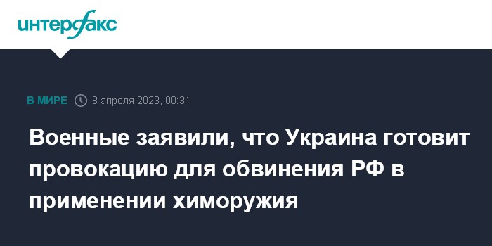 Москва. 8 апреля. INTERFAX.RU - Российские военные заявили, что власти Украины готовят провокацию, чтобы обвинить армию РФ в применении отравляющих веществ.