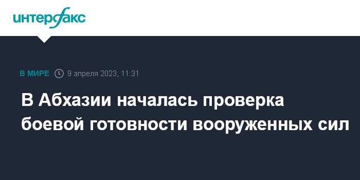 Москва. 9 апреля. INTERFAX.RU - Министерство обороны Абхазии сообщает о старте широкомасштабных учений Вооруженных сил, проходит проверка боевой готовности органов военного управления и войск с выходом на полигоны и незнакомые участки местности.