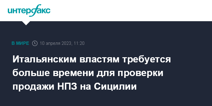 Итальянским властям требуется больше времени для проверки продажи НПЗ на Сицилии