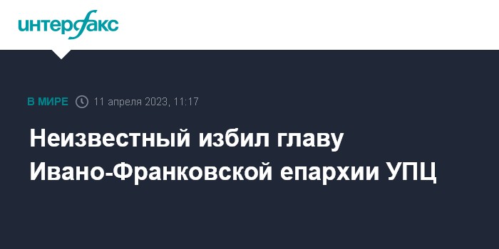 Москва. 11 апреля. INTERFAX.RU - Епископ Ивано-Франковский Никита был избит в понедельник около 22:00 возле Черновицкого епархиального управления, сообщает телеграм-канал Черновицко-Буковинской епархии Украинской православной церкви.