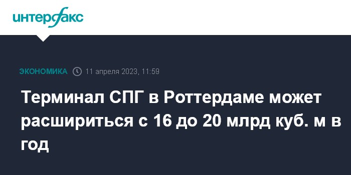Москва. 11 апреля. INTERFAX.RU - Мощности терминала по приему сжиженного природного газа в Роттердаме Gate LNG могут быть расширены с 16 до 20 млрд кубометров в год, сообщил бункеровочный оператор Vopak, который является участником проекта.
