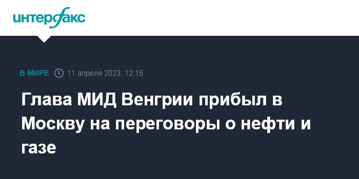 Глава МИД Венгрии прибыл в Москву на переговоры о нефти и газе