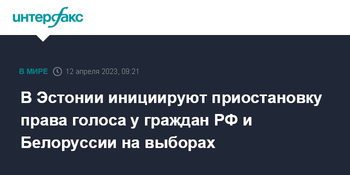 Москва. 12 апреля. INTERFAX.RU - Партии, формирующие новое правительство в Эстонии, намерены приостановить действие права голоса на местных выборах у проживающих в республике граждан России и Белоруссии, сообщают эстонские СМИ.