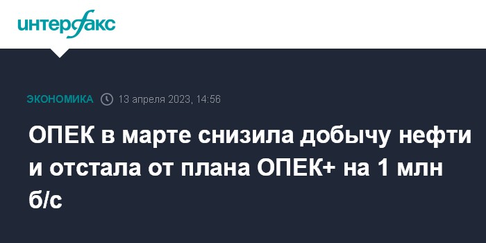 ОПЕК в марте снизила добычу нефти и отстала от плана ОПЕК+ на 1 млн б/с