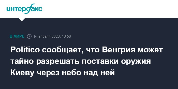 Politico сообщает, что Венгрия может тайно разрешать поставки оружия Киеву через небо над ней