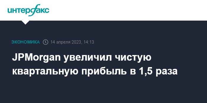 Москва. 14 апреля. INTERFAX.RU - JPMorgan Chase & Co., крупнейший банк США по объему активов, увеличил чистую прибыль в первом квартале 2023 года в 1,5 раза, выручку - на 25%.