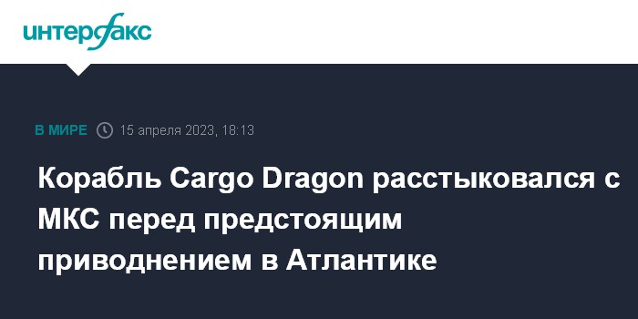 Москва. 15 апреля. INTERFAX.RU - Многоразовый корабль Cargo Dragon американской компании SpaceX в субботу успешно расстыковался с Международной космической станцией (МКС), сообщило НАСА.