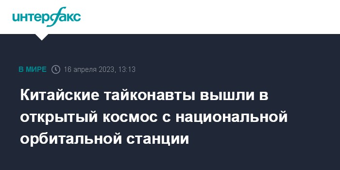 Москва. 16 апреля. INTERFAX.RU - Китайские тайконавты Фэй Цзюньлун и Чжан Лу провели успешный выход в открытый космос с борта национальной орбитальной станции "Тяньгун", сообщило в воскресенье управление программы пилотируемых полетов КНР (CMSA).