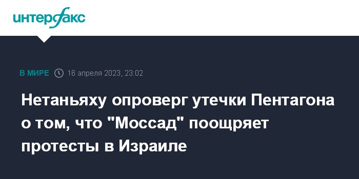 Ранее стало известно, что по данным американской разведки, которые стали доступны в ходе утечки из Пентагона, руководство службы внешней разведки Израиля Моссад поощряло сотрудников агентства и израильских граждан к участию в антиправительственных протестах, охвативших страну в марте.