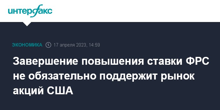 Завершение повышения ставки ФРС не обязательно поддержит рынок акций США