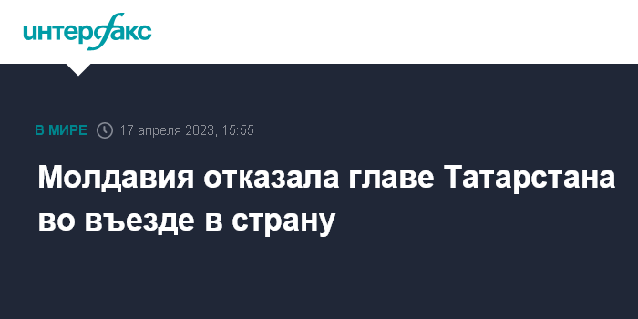Москва. 17 апреля. INTERFAX.RU - Власти Молдавии объявили главу Татарстана Рустама Минниханова "нежелательным лицом" в стране и запретили въезд в республику.