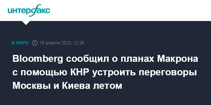 Bloomberg сообщил о планах Макрона с помощью КНР устроить переговоры Москвы и Киева летом
