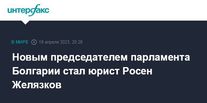 Москва. 19 апреля. INTERFAX.RU - Депутат от коалиции "Граждане за европейское развитие Болгарии - Союз демократических сил" (ГЕРБ-СДС), юрист, бывший министр транспорта Росен Желязков в среду избран председателем нового состава Народного собрания (парламента) Болгарии, сообщает Болгарское национальное радио.