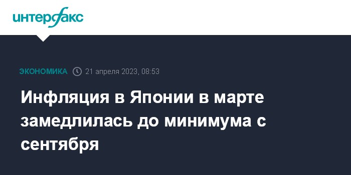 Инфляция в Японии в марте замедлилась до минимума с сентября