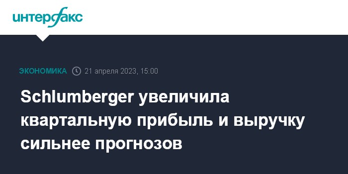 Москва. 21 апреля. INTERFAX.RU - Американская нефтесервисная компания SLB (ранее известная как Schlumberger), одна из крупнейших в мире, в первом квартале увеличила чистую прибыль и выручку сильнее прогнозов, а также повысила дивидендные выплаты.