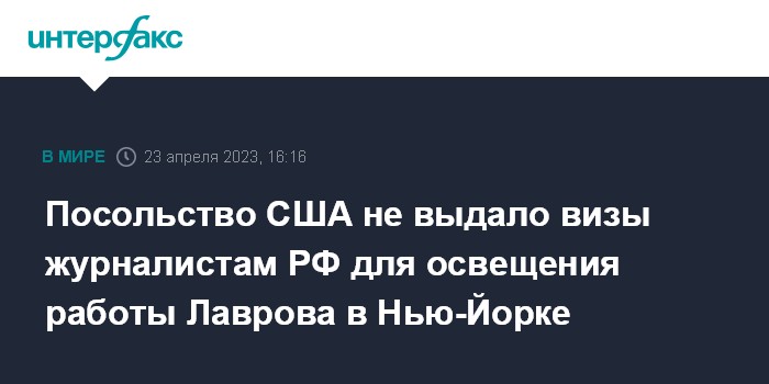 Посольство США не выдало визы журналистам РФ для освещения работы Лаврова в Нью-Йорке