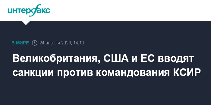 Москва. 24 апреля. INTERFAX.RU - Великобритания вместе с США и Евросоюзом в понедельник ввела санкции в отношении представителей командования Корпуса стражей Исламской революции (КСИР) Ирана в связи с нарушениями прав человека, сообщает британский МИД.