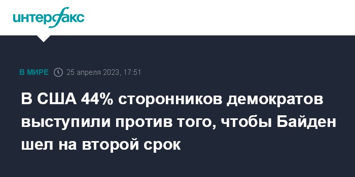Согласно его данным, 44% сторонников демократов выступают против того, чтобы Байден шел на второй срок.