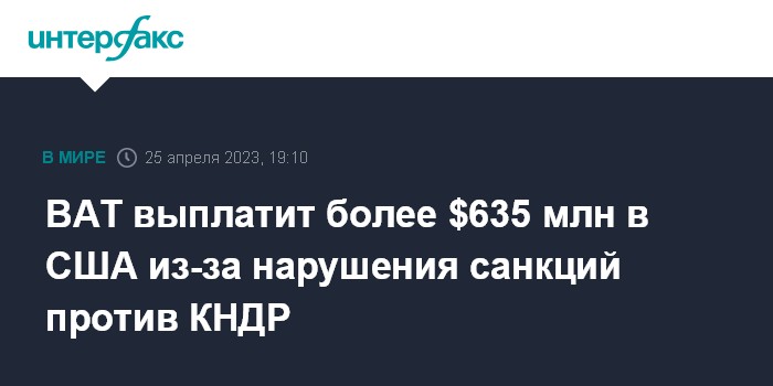 BAT выплатит более $635 млн в США из-за нарушения санкций против КНДР