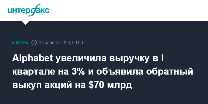 Alphabet увеличила выручку в I квартале на 3% и объявила обратный выкуп акций на $70 млрд