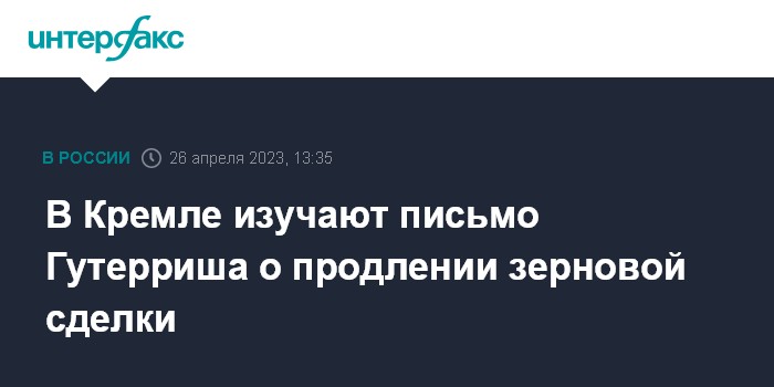 24 апреля сообщалось, что Гутерриш передал в Нью-Йорке главе российского МИД Сергею Лаврову письмо на имя Путина. В письме были предложения по совершенствованию, продлению и расширению зерновой сделки, "с учетом позиций, недавно выраженной сторонами, и рисков, с которыми сталкивается глобальная продовольственная безопасность". Аналогичные послания были направлено Украине и Турции.
