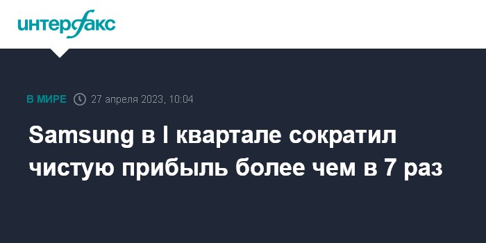 Москва. 27 апреля. INTERFAX.RU - Южнокорейская Samsung Electronics Co., крупнейший мировой производитель смартфонов и полупроводниковой продукции, в первом квартале сократила чистую прибыль более чем в семь раз.