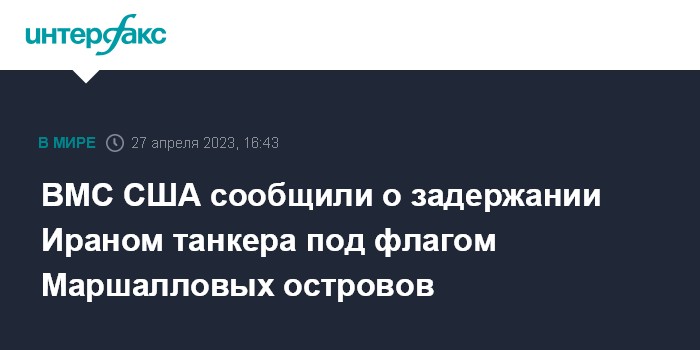 Москва. 27 апреля. INTERFAX.RU - ВМС США в четверг сообщили, что Иран задержал в Оманском заливе нефтеналивной танкер под флагом Маршалловых островов.