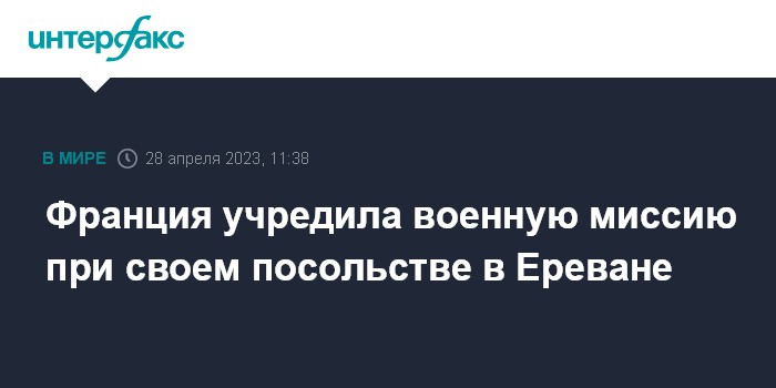 Москва. 28 апреля. INTERFAX.RU - Военная миссия создана при посольстве Франции в Армении, сообщила министр иностранных дел Франции Катрин Колонна.