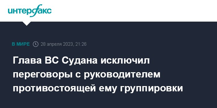 Москва. 28 апреля. INTERFAX.RU - Главнокомандующий вооруженными силами Судана генерал Абдель Фаттах аль-Бурхан в пятницу исключил возможность проведения переговоров с руководителем Мухаммедом Хамданом Дагало, возглавляющим военизированное формирование "Силы быстрого реагирования" (СБР), передает "Аль-джазира".