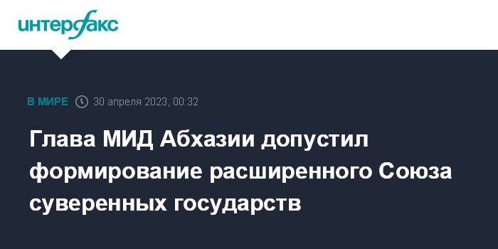 Москва. 30 апреля. INTERFAX.RU - Активизация интеграционных процессов на пространстве бывшего СССР может привести к формированию расширенного Союза суверенных государств, заявил в субботу министр иностранных дел Абхазии Инал Ардзинба на Всемирной онлайн-конференции по многополярности.