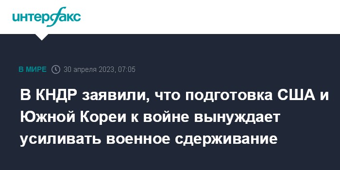 Москва. 30 апреля. INTERFAX.RU - В условиях подготовки Вашингтона и Сеула к вторжению в Северную Корею КНДР вынуждена наращивать меры, направленные на усиление военного сдерживания, сообщает ЦТАК.