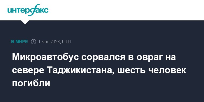 Москва. 1 мая. INTERFAX.RU - На севере Таджикистана микроавтобус сорвался в 200-метровый овраг, шесть человек погибли, еще трое пострадали, сообщает КЧС республики.